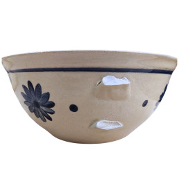 Možnost glazury: Mísa se světlou glazurou a modrým zdobením.