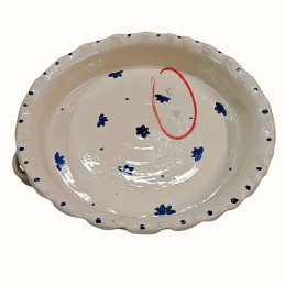 Objevte kouzlo tradičního pečení s naší ručně vyráběnou kameninovou formou na koláč nebo pizzu. Každý kus je pečlivě vytvořen s láskou a precizností, což zaručuje jedinečnost a kvalitu. Tento kus je plně funkční, ale nese kosmetickou vadu - dva otřepy zabroušené neglazované na dně pekáče (velikost cca 1cm). Viz. fotogalerie. Tato nedokonalost je pouze vizuální a nemá žádný vliv na funkčnost.