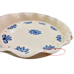 Objevte kouzlo tradičního pečení s naší ručně vyráběnou kameninovou formou na koláč nebo pizzu. Každý kus je pečlivě vytvořen s láskou a precizností, což zaručuje jedinečnost a kvalitu. Tento kus je plně funkční, ale nese kosmetickou vadu - drobný odštípnutý kousek na horním okraji (velikost asi 0,5cm x 0,5cm). Viz. fotogalerie. Tato nedokonalost je pouze vizuální a nemá žádný vliv na funkčnost.