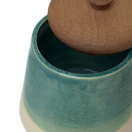 dóza na sypké potraviny s dřevěnou pokličkou, objem 0,5 L – kameninová potravinová dóza – ruční výroba