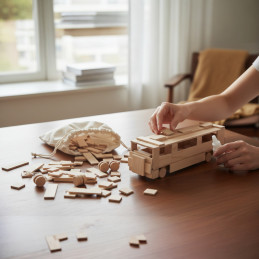 Stavění modelu rozvíjí zručnost, trpělivost a kreativitu a je ideální jako společná aktivita pro děti i dospělé. K sestavení je potřeba pouze disperzní lepidlo (např. Herkules) a chuť tvořit. Výsledkem je radost z vlastnoručně postaveného dřevěného auta.