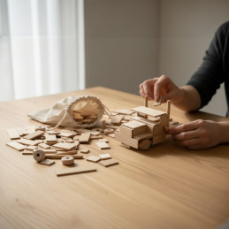 Stavění modelu rozvíjí zručnost, trpělivost a kreativitu a je ideální jako společná aktivita pro děti i dospělé. K sestavení je potřeba pouze disperzní lepidlo (např. Herkules) a chuť tvořit. Výsledkem je radost z vlastnoručně postaveného dřevěného auta.