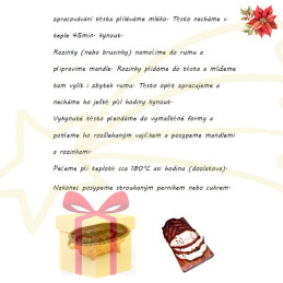 Z trochy mléka, trochy cukru a droždí připravíme kvásek, který necháme v teple vzejít. Do mouky přidáme povolené máslo pokrájené na kousky (nebo roztopené - v tekutém stravu), cukr, sůl a nastrouhanou citronovou kůru s anýzem. K tomu přidáme vykynutý kvásek, vaječné žloutky a při zpracovávání těsta přiléváme mléko. Těsto necháme v teple 45min. kynout. Rozinky (nebo brusinky) namočíme do rumu a připravíme mandle. Rozinky přidáme do těsta a můžeme tam vylít i zbytek rumu. Těsto opět zpracujeme a necháme ho ještě půl hodiny kynout. Vykynuté těsto přendáme do vymaštěné formy a potřeme ho rozšlehaným vajíčkem a posypeme mandlemi a rozinkami. Pečeme při teplotě cca 180°C asi hodinu (dozlatova).