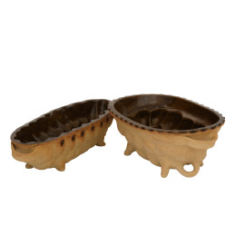 Forma na vánočky je vyrobená šikovnou paní keramičkou v její valašské dílně. Paní keramička formu vyrábí z kvalitní hlíny, rozpracovaná forma musí několik týdnů vysychat a potom se minimálně 2x vypaluje. První vypalování je bez glazury, vypaluje se holá hlína při teplotě nad 900°C. Po prvním pálení musí forma pomalu chladnout, pozvolné ochlazování ze začátku probíhá ve vypnuté, neotevřené peci. Když teplota klesne na pár desítek stupňů, vyndá se z pece, nechá se úplně vychladnout a potom je možné ve výrobním procesu pokračovat. Nanáší se glazura a forma se opět nechá vysychat (proces vysychání je už relativně krátký, nejedná se o týdny). Po vyschnutí přichází druhé vypalování, tentokrát teplota přesahuje 1000°C. Po mnoho hodinách vypalování se forma nechává opět pomalu vychladnout. Proces vychlazování je stejný jako po prvním pálení. Až forma vychladne, je připravena na distribuci k zákazníkovi.