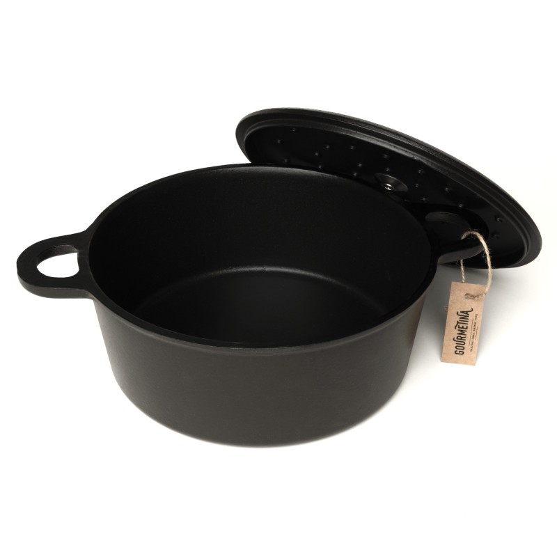 Díky dvěma vrstvám matného černého smaltu je pekáč nejen zdravotně nezávadný, ale také odolný vůči vysokým teplotám a snadno se udržuje. Litina výborně vede teplo po celém obvodu, takže nezáleží, odkud přichází zdroj – výsledek bude vždy rovnoměrně propečený.