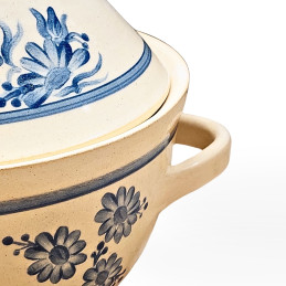 Možnost glazury: Pekáč se světlou glazurou a modrým zdobením.