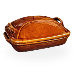 Elegantní hnědá glazura s vysokým leskem: Dodává pekáči klasický vzhled, který se hodí do každé kuchyně.