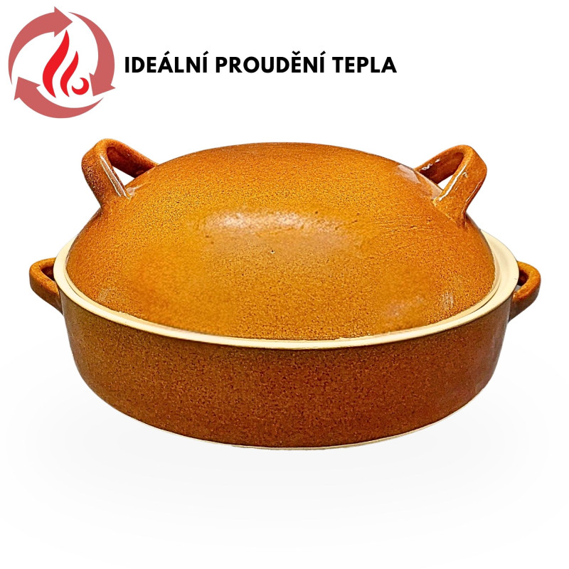 Kameninový pekáč s kupolovitou poklicí pro ideální proudění tepla.