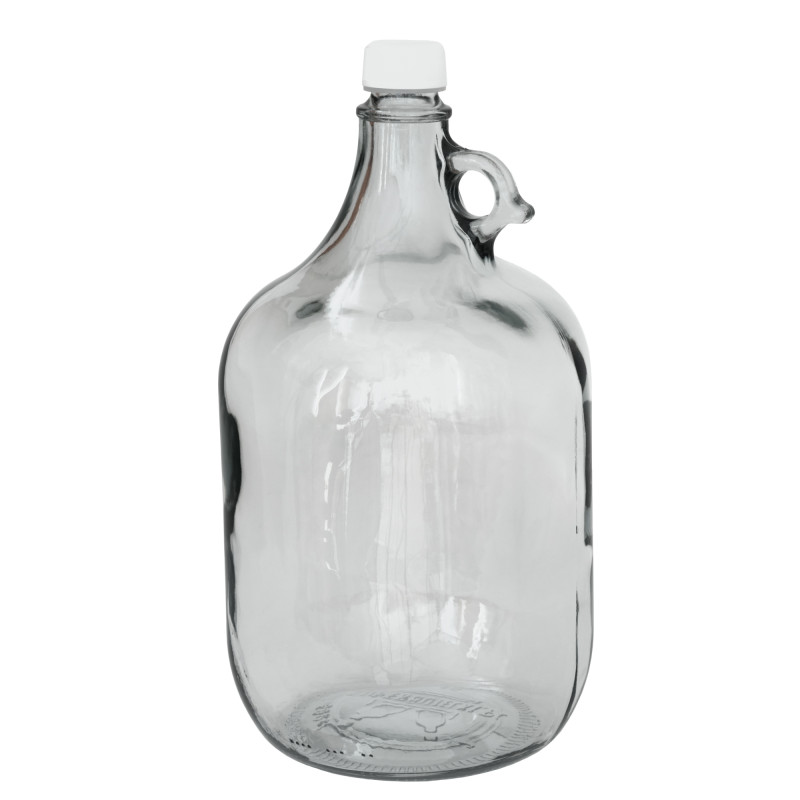 demižón 5L s ouškem a uzávěrem - lisované sklo