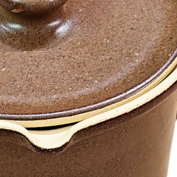 Elegantní světlá terakota s hnědě glazovanými doplňky: Dodává hrnci klasický vzhled, který se hodí do každé kuchyně.