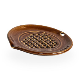 Stylová glazura: Krásná lesklá hnědá glazura dodává struhadlu nadčasový vzhled, který se hodí do každé kuchyně.
