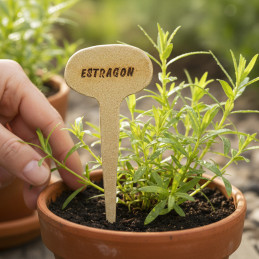Jmenovka k bylinkám - estragon Objevte kouzlo ručně vyráběných zápichů k bylinkám, které dodají vaší zahradě nebo truhlíku osobitý šarm. Každý kus je originál, pečlivě vytvořený s láskou a precizností, což zaručuje jedinečnost a kvalitu. Jmenovky jsou nejen praktické, ale také esteticky příjemné. Vlastnosti: Trvanlivý materiál: Kvalitní keramika...