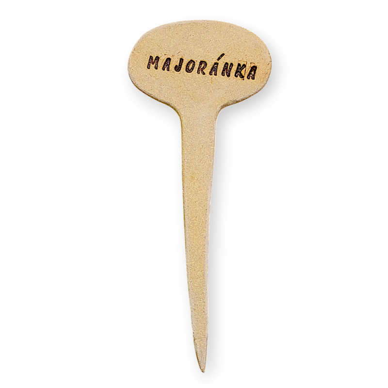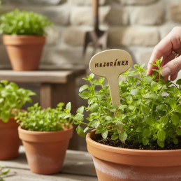 Jmenovka k bylinkám - majoránka Objevte kouzlo ručně vyráběných zápichů k bylinkám, které dodají vaší zahradě nebo truhlíku osobitý šarm. Každý kus je originál, pečlivě vytvořený s láskou a precizností, což zaručuje jedinečnost a kvalitu. Jmenovky jsou nejen praktické, ale také esteticky příjemné. Vlastnosti: Trvanlivý materiál: Kvalitní keramika...