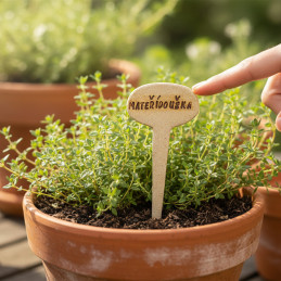 Objevte kouzlo ručně vyráběných zápichů k bylinkám, které dodají vaší zahradě nebo truhlíku osobitý šarm. Každý kus je originál, pečlivě vytvořený s láskou a precizností, což zaručuje jedinečnost a kvalitu. Jmenovky jsou nejen praktické, ale také esteticky příjemné.