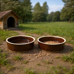 Masivní kameninová miska na vodu nebo krmivo pro zvířata (např. psy). Ručně vyráběná odléváním do formy. Miska má hnědou glazuru. Výhodou kameninové misky je dlouhá trvanlivost, odolnost vůči UV záření, snadná údržba a čištění. Více informací a video produktu ve spodní části stránky. Tento kus je plně funkční, ale nese drobnou kosmetickou...