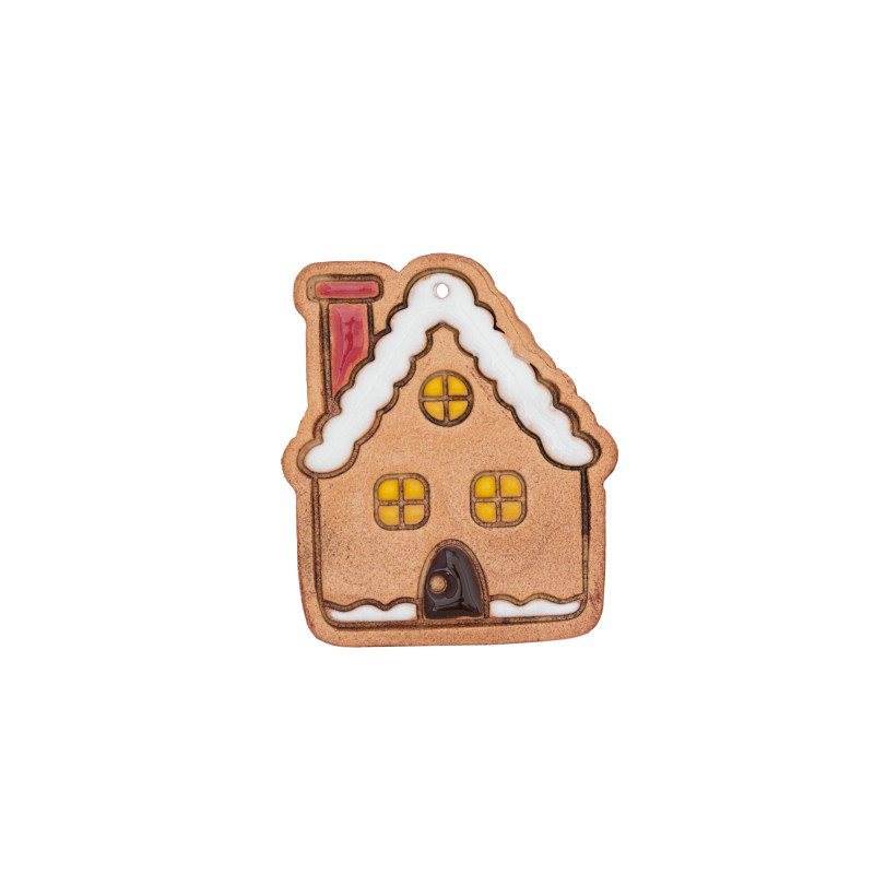 Vánoční ozdoba - keramický domeček.  Ozdoba je krásně vyhotovená do nejmenších detailů. Má otvor pro navléknutí šňůrky a zavěšení např. na vánoční stromek. Více informací ve spodní části stránky.