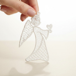 Závěsná vánoční dekorace – anděl z vyšívané krajky